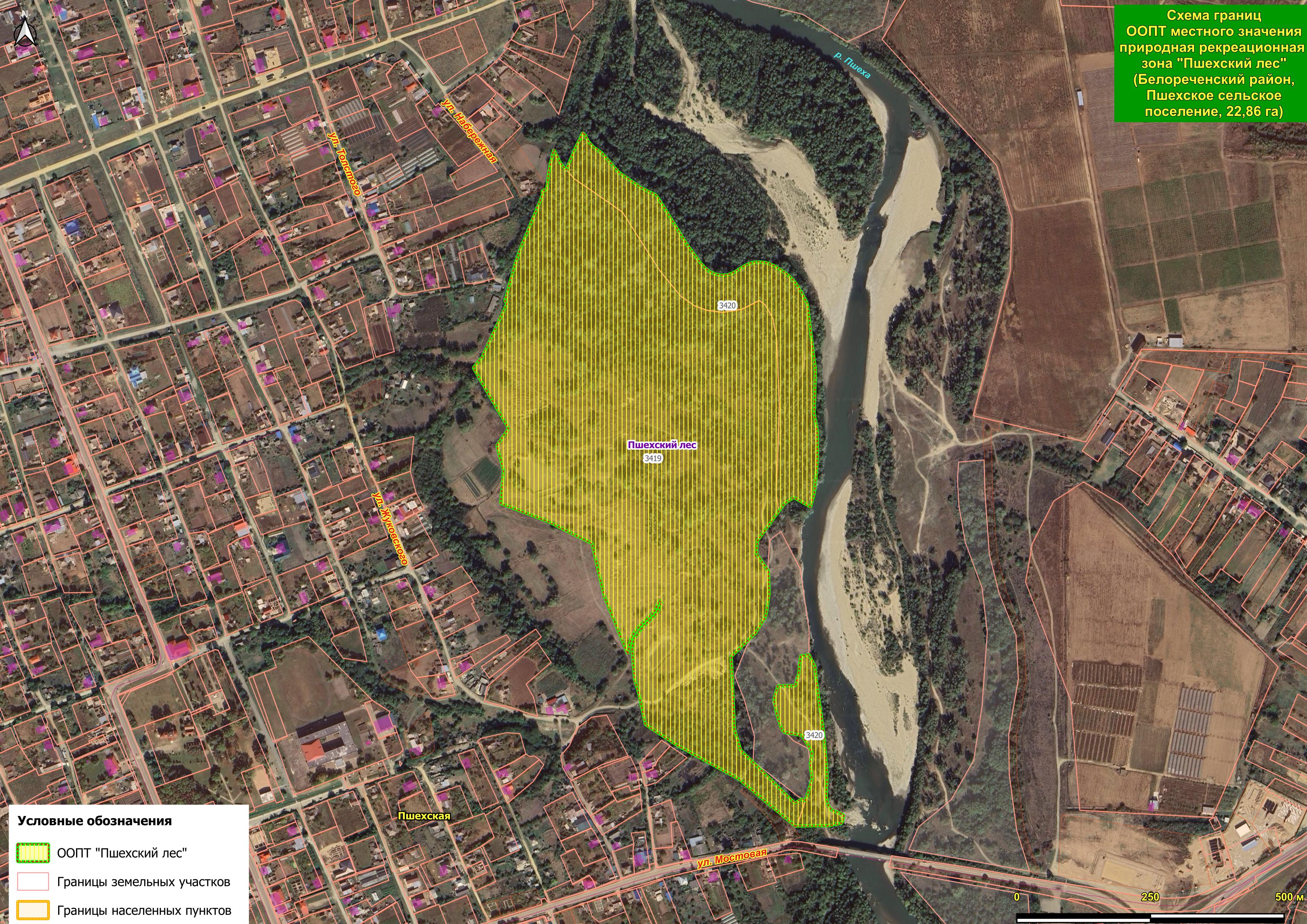 Три постановления о создании ООПТ были утверждены главой Белореченского района Сергеем Сидоренко в один день – 23 октября 2025г. Согласно этим постановлениям, были созданы природная рекреационная зона "Приречный лес" (49,75 га), расположенная возле посёлка Приречный в Родниковском и Южненском сельских поселениях на берегу реки Белой; природная рекреационная зона "Пшехский лес", (22,86 га) в станице Пшехской в Пшехском сельском поселении на берегу реки Пшеха; природная рекреационная зона "Грушевый сад" (13,85 га) вблизи станицы Рязанской в Рязанском сельском поселении на берегу реки Пшиш. При этом в действительности ООПТ "Грушевый сад" была не создана, а расширена, просто предыдущее постановление по этой ООПТ было принято на уровне Рязанского сельского поселения, а последнее – на уровне администрации Белореченского района. Общая площадь этой ООПТ – 33,77 га.