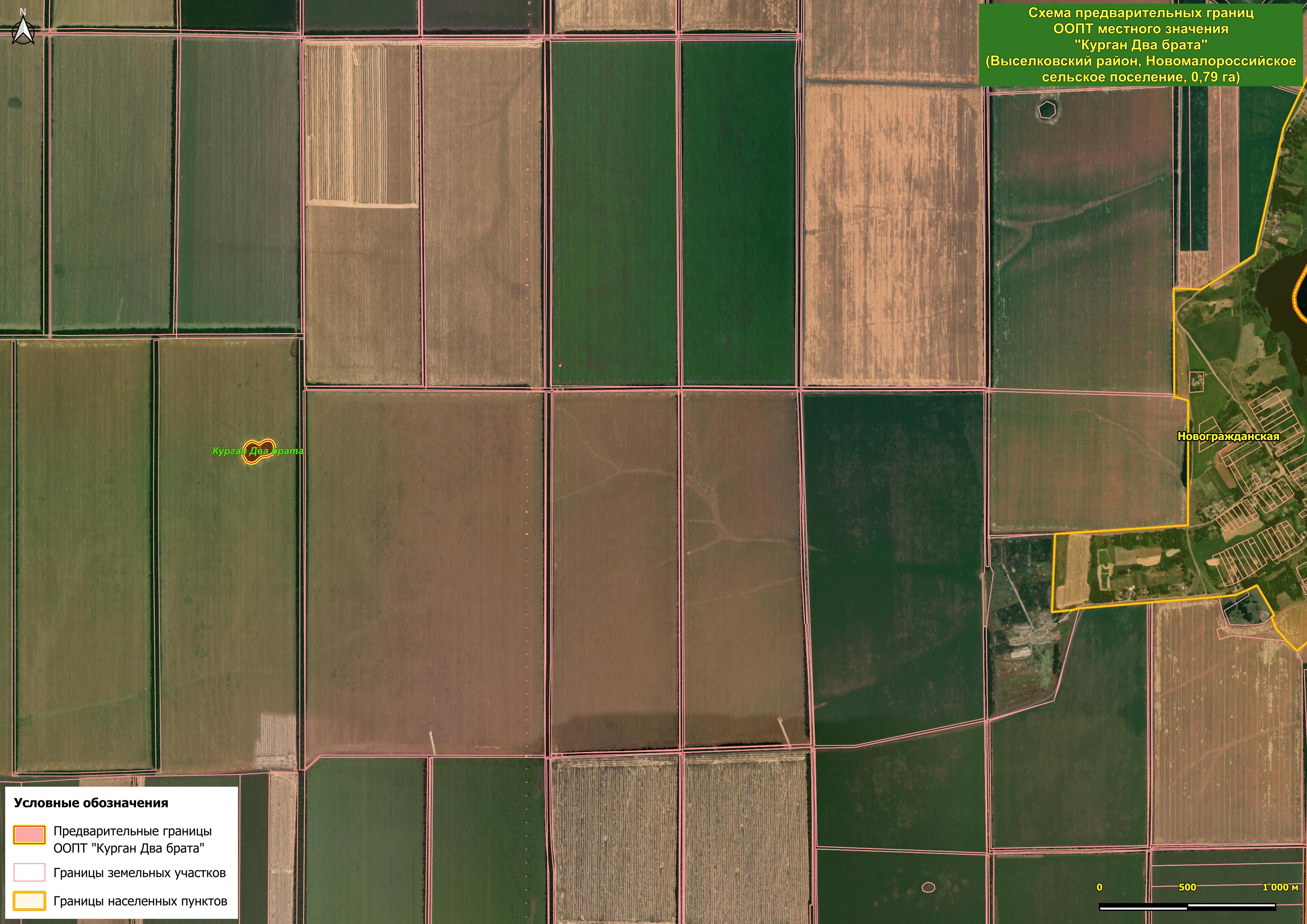 Очень интересны объекты природно-исторической ценности – курганы, четыре из которых были обследованы рабочей группой проекта в ходе этого полевого выезда. "Курган Два брата" (площадь 0,79 га) и "Курган Новогражданский" (площадь 0,59 га) расположены на водоразделе к западу от станицы Новогражданской и по своим характеристикам являются потенциальными ООПТ регионального значения. Это три крупных, незамусоренных, покрытых естественной степной растительностью кургана округлой формы, с остатками триангуляционных пунктов на вершинах. Первичные экосистемы составляют в основном кустарники и травы, из древесных видов на западном кургане первой перспективной ООПТ довольно много тёрна, а с северной стороны Новогражданского кургана растут несколько деревьев ясеня пенсильванского и гледичии трёхколючковой. Все три кургана покрывает ковёр разнотравья. На курганах Два брата он отличного качества: барвинок травянистый, незабудка мягкая, фиалка трёхцветная, подмаренник цепкий, звездчатка средняя, пырей, чистяк весенний, молочай, гусиный лук, по краям щавель, ярутка полевая, на восточном кургане встречается редкий вид птицемлечник.