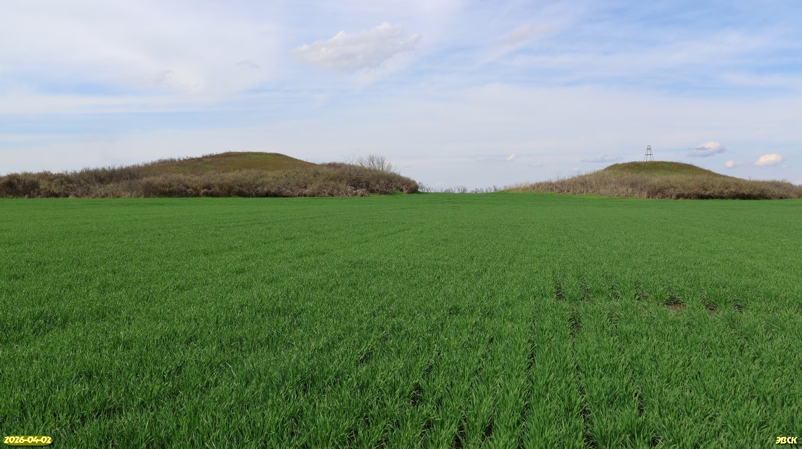 2 апреля 2026 года в рамках проекта "Увеличение зелёного пояса Кубани (5 этап)", который Экологическая Вахта по Северному Кавказу осуществляет в Краснодарском крае благодаря финансовой поддержке программы грантов Губернатора Кубани, был проведён полевой экспедиционный выезд в Выселковский район. Располагаясь в степной ландшафтной зоне с умеренно-континентальным климатом с мягкой непродолжительной зимой и жарким солнечным летом, это муниципальное образование десятилетиями развивалось как аграрный район, что неминуемо привело к очень сильной деформации и деградации естественных ландшафтов на его территории вследствие распашки. Тем не менее, в районе осталось ещё довольно много разных по площади, форме и состоянию участков, покрытых первичной естественной либо вторичной восстановившейся степной растительностью. Не стоит сбрасывать со счетов также обычно небольшие и часто запущенные искусственные либо смешанного происхождения озеленённые территории, разбросанные среди возделываемых полей и в населённых пунктах. Задачей ЭВСК является способствование сохранению этих ценных как в природоохранном, так и в социальном плане участков. Многие из них при некоторых вложениях сил и средств могут стать хорошими зонами отдыха для проживающих вблизи людей. Но прежде всего они нуждаются в придании охранного статуса – зелёной зоны либо особо охраняемой природной территории (ООПТ) местного или даже регионального значения.