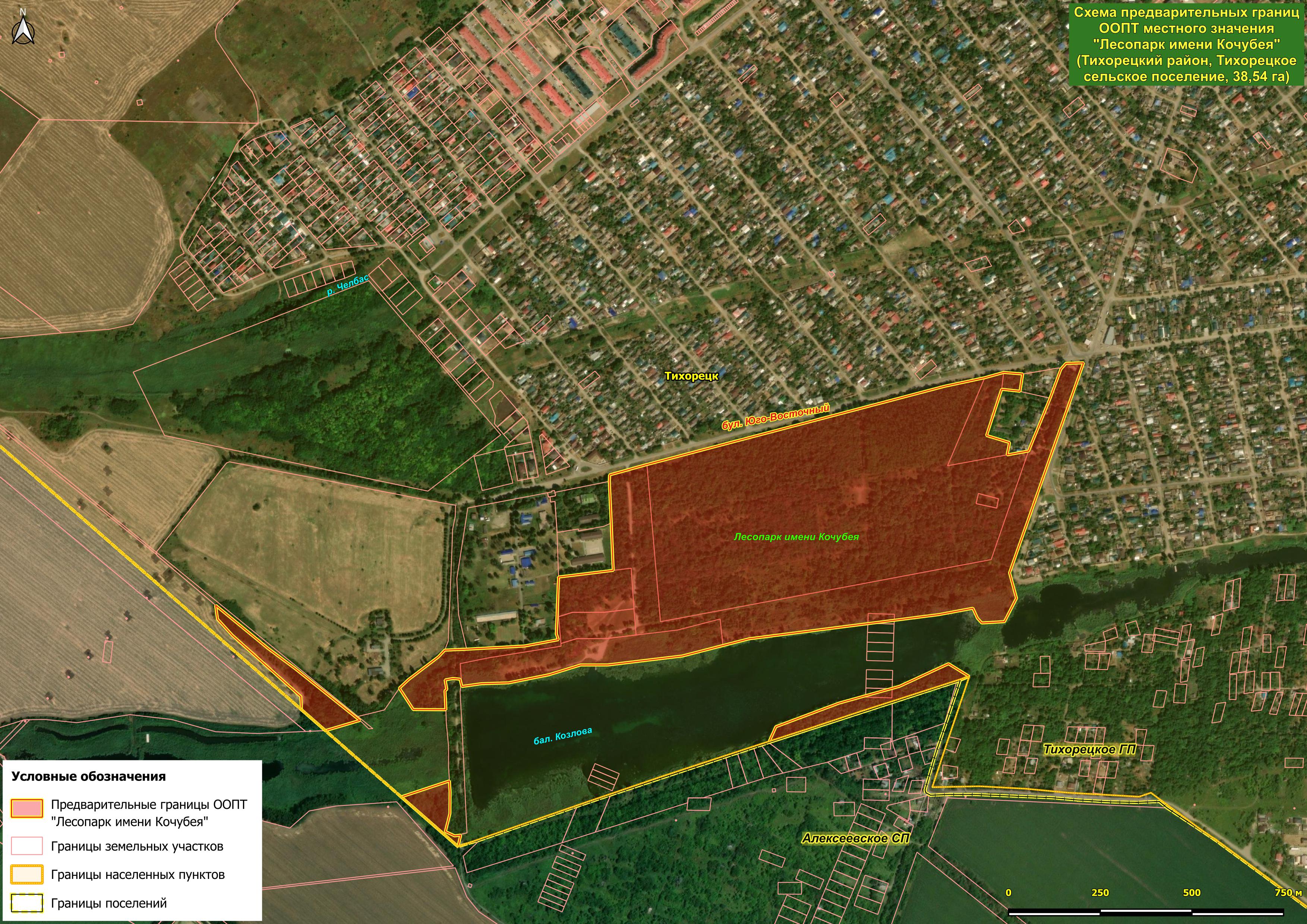Большой "Лесопарк имени Кочубея" (площадь 38,54 га) находится севернее балки Козлова, на которой есть пруд. Лесопарк представляет собой хорошего качества лесной массив - искусственные посадки, в значительной степени натурализовавшиеся, в составе которых преобладает ясень пенсильванский, также есть ясень обыкновенный (деревья обоих видов разного возраста, как повреждённые ясеневой златкой и засохшие, так и здоровые), тополь чёрный, клён остролистный, явор, полевой и ясенелистный, орех чёрный, робиния лжеакация, гледичия трёхколючковая, каштан конский, каркас западный, вяз мелколистный, алыча, шелковица, вишня степная, яблоня, груша, несколько экземпляров катальпы, в восточной части группами произрастает сосна крымская, ближе к реке ива; отмечены кустарники ежевика сизая и священная, свидина южная, бузина чёрная, бирючина обыкновенная, на полянах заросли тёрна; на одной из полян участники выезда обнаружили несколько экземпляров краснокнижной караганы кустарниковой. Из трав на полянах заметны девясил, репешок аптечный, вейник, тысячелистник, цикорий. В лесопарке довольно развитая тропиночная сеть, есть грунтовые дороги, проходимость в основном хорошая и средняя. Из антропогенных угроз стоит прежде всего отметить вырубку, застройку и пожары в местах произрастания сосны.Озеленённые территории, которые по результатам обследования оказались потенциальными зелёными зонами, расположены по большей части в границах и на окраинах населённых пунктов и обладают большим рекреационным потенциалом. Среди них есть как практически готовые зоны отдыха типа парков, скверов и аллей, так и довольно запущенные, требующие прочистки, ухода за древостоем и подсадки коренных кубанских древесных видов для повышения привлекательности.